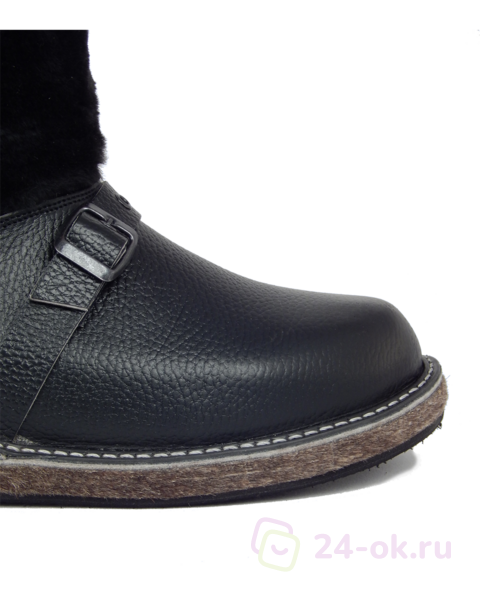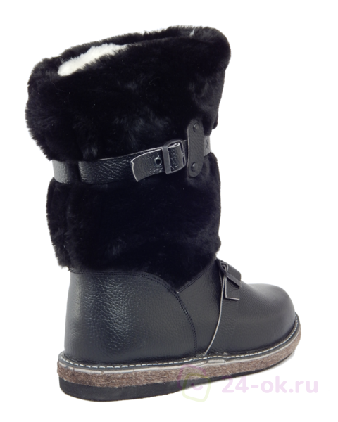 Голенище: Снаружи - иск. мех, черный матовый ("Мутон"), внутри - натуральная овчина по всему сапогу, в т.ч. в области союзки и пятки.
