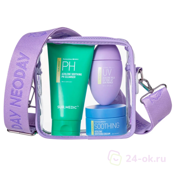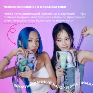 Набор успокаивающей косметики с азуленом Neogen SUR.MEDIC+ Azulene DREAMCATCHER Set - это три полноразмерных хита бренда в стильной прозрачной сумочке-косметичке: