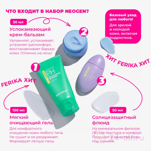 - Мягкий очищающий гель для умывания с успокаивающим комплексом (100 мл) - подходит для утреннего и вечернего умывания для всех типов кожи, включая чувствительную и проблемную. Не сушит и не раздражает. Формирует легкую пену.