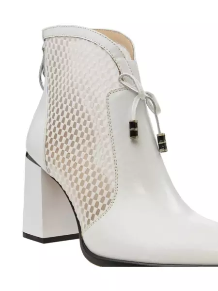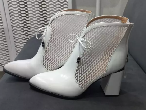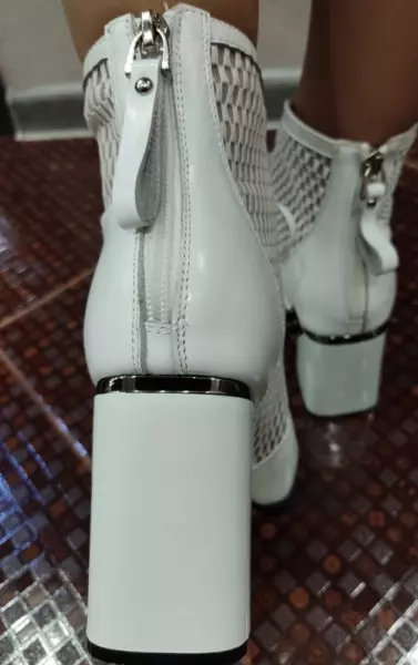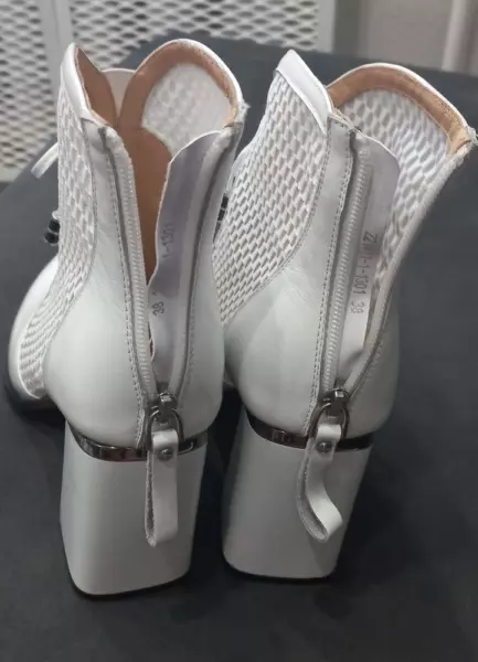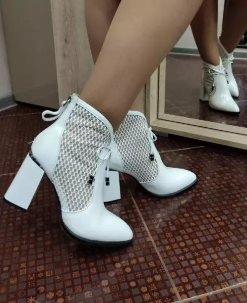Цвет верха: Белый Вид застежки: Молния Сезон: Летн. Перфорация: Нет Артикул: 221411-1-1301 Открытость мыска: С закрытым мыском Тип каблука: Стандартный Вид пятки: С закрытой пяткой Страна производитель: Кнр Вид товара: Ботильоны Пол: Жен. Стиль: Повседневный Материал верха: Натуральная кожа; пу Материал стельки: Натуральная кожа Материал подкладки: Натуральная кожа Материал подошвы: Тунит Обхват голенища, см: 22 Толщина подошвы, см: 2 Полнота колодки: 06 (f) Высота каблука, см: 8.5 Высота голенища, см: 13.0