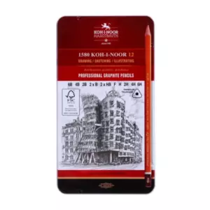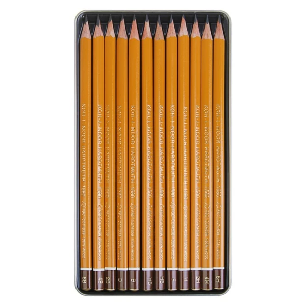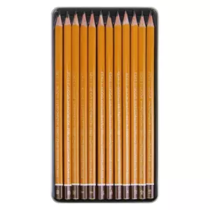Набор карандашей чернографитных разной твердости 12 штук Koh-I-Noor 1580, 6В-6Н, в металлическом пенале