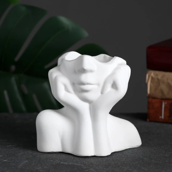 Фигурное кашпо для цветов «Майя», 90 мл, 13.5×9 см, гипс, белое