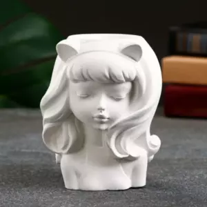 Декоративное кашпо для цветов «Девушка с ушками», 11×9×7 см, гипс, белое