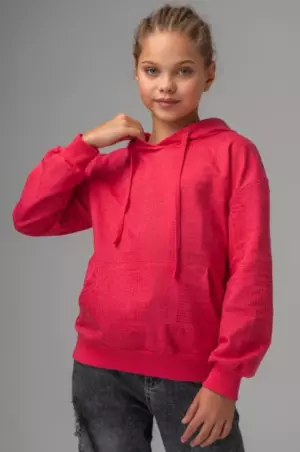 Демисезонное худи цвета фуксия выполнено из натурального 100% хлопка, приятной к телу плотной трикотажной ткани. Хлопковая толстовка розового цвета не боится частых стирок и надолго сохраняет первоначальный внешний вид.