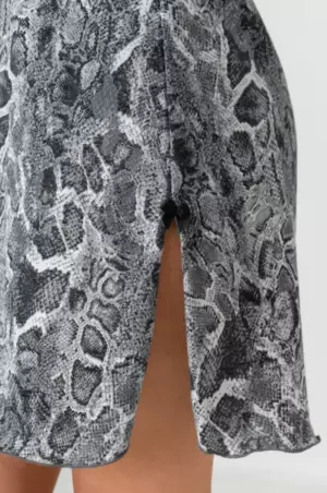 Женская сорочка выполнена из натурального 100% хлопка. Эффектные разрезы, кружевная спинка и комфортная длина выше колен – каждая деталь делает ночнушку для женщин милой и невероятно удобной! Короткая сорочка украшена змеиным принтом.
