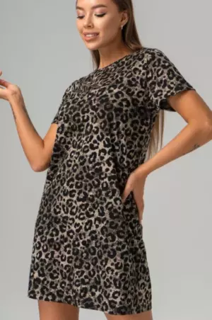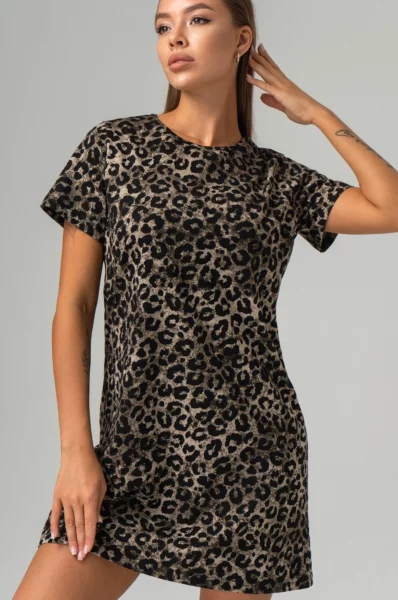 Легкое короткое платье с рисунком леопард идеально для дома, отдыха и прогулок летом.