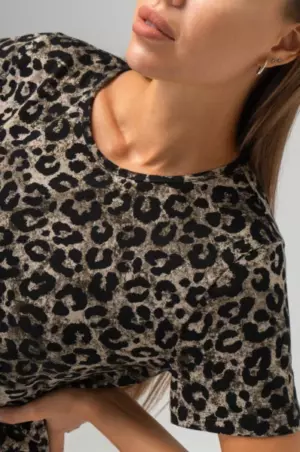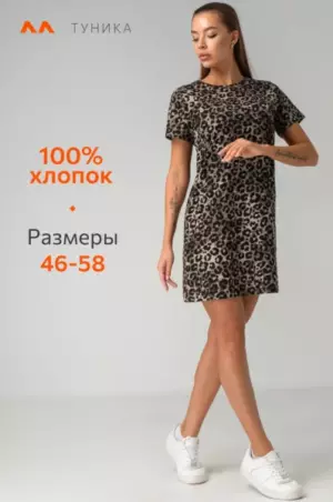 Женская туника с леопардовым принтом – воплощение изысканности и непринужденности. Повседневное домашнее платье выполнено из нежного, приятного к телу 100% хлопка.