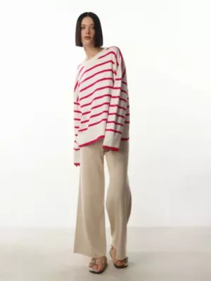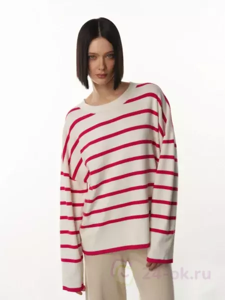 72% вискоза, 28% нейлон Стильный джемпер для повседневных образов. Классическая модель прямого свободного кроя с круглым вырезом. Контрастные вертикальные полосы делают образ современным и динамичным, помещают изделие в центр образа. Манжеты, горловина и низ изделия оформлены фактурной резинкой. Джемпер изготовлен из мягкого, приятного к телу трикотажа высокого качества на основе вискозы. Носите с однотонными брюками, джинсами и другими любимыми вещами. Три цветовых сочетания – молочно-розовый, молочно-лаймовый и молочно-мускатный – будут красиво с ними сочетаться.