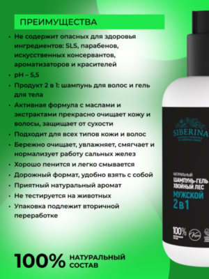 Siberina Для волос Шампуни / НАТУРАЛЬНЫЙ ШАМПУНЬ-ГЕЛЬ 2 В 1 "ХВОЙНЫЙ ЛЕС"