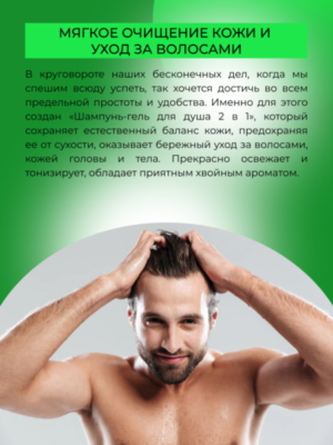 В круговороте наших бесконечных дел, когда мы спешим всюду успеть, так хочется достичь во всем предельной простоты и удобства. Именно поэтому создан "Шампунь-гель для душа 2 в 1", который сохраняет естественный баланс кожи, предохраняя её от сухости. Оказывает бережный уход за волосами, кожей головы и тела. Прекрасно освежает и тонизирует, обладает приятным ароматом.