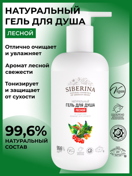 Siberina Для тела Гели, пенки, мыло для душа / НАТУРАЛЬНЫЙ ГЕЛЬ ДЛЯ ДУША "ЛЕСНОЙ"