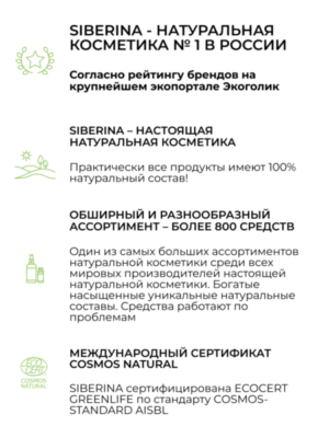 Принятие ванны станет истинным наслаждением с линейкой натуральных гелей для душа компании "SIBERINA". Гели для душа бережно очищают кожу, питают и увлажняют ее, защищая от потери влаги и сухости. Гели поддерживают естественный баланс кожи, делая ее гладкой и шелковистой. Натуральные гели для душа подарят Вашей коже интенсивный уход и изысканный аромат.