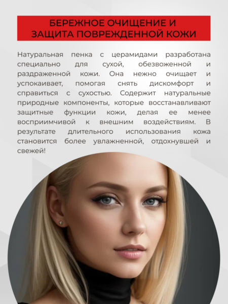 Натуральная пенка для умывания содержит церамиды - "кирпичики", из которых состоит естественный защитный барьер кожи. Когда он нарушается, кожа становится обезвоженной, тусклой, раздраженной, чувствительной, более уязвимой к внешним воздействиям и подверженной раннему старению. Пенка, обогащенная церамидами, подарит вашей коже бережное очищение, длительное увлажнение, свежесть и комфорт.