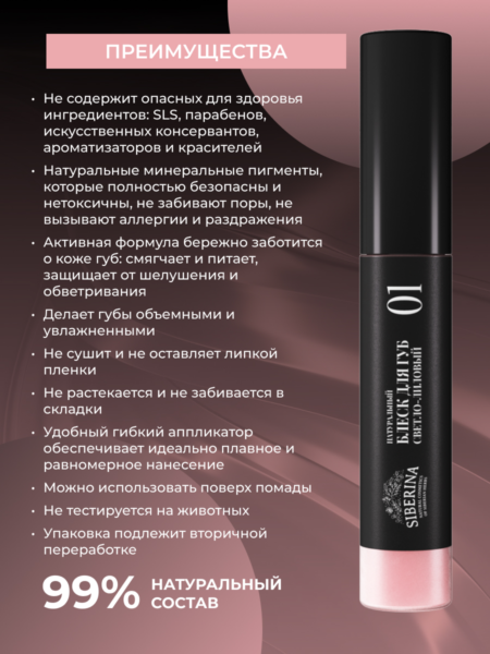 Siberina Декоративная косметика Помады и белски для губ / НАТУРАЛЬНЫЙ БЛЕСК ДЛЯ ГУБ