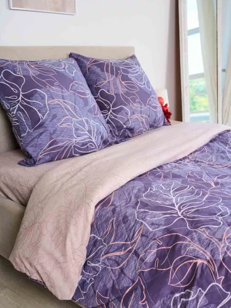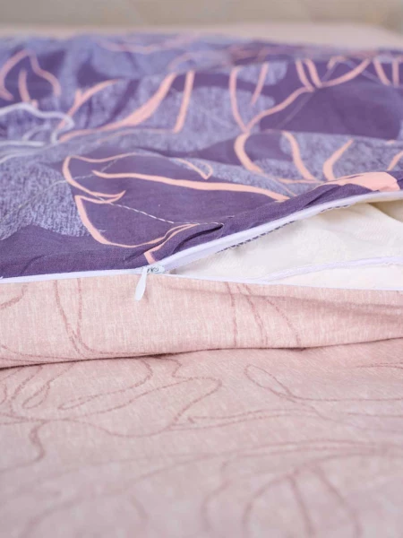 Замечательный комплект постельного белья для всей семьи. Подходит на любой сезон. Уникальной особенностью данного комплекта является утепленный стеганый пододеяльник, выполняющий функцию облегченного одеяла летом, с дополнительной секцией на молнии для основного одеяла любого типа. Тепло - зимой, не жарко - летом. Идеально на каждый день.