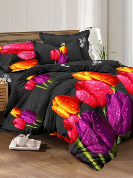 Постельное белье поплин эксклюзив - Тюльпаны на черном 2 сп. (нав.70х70)