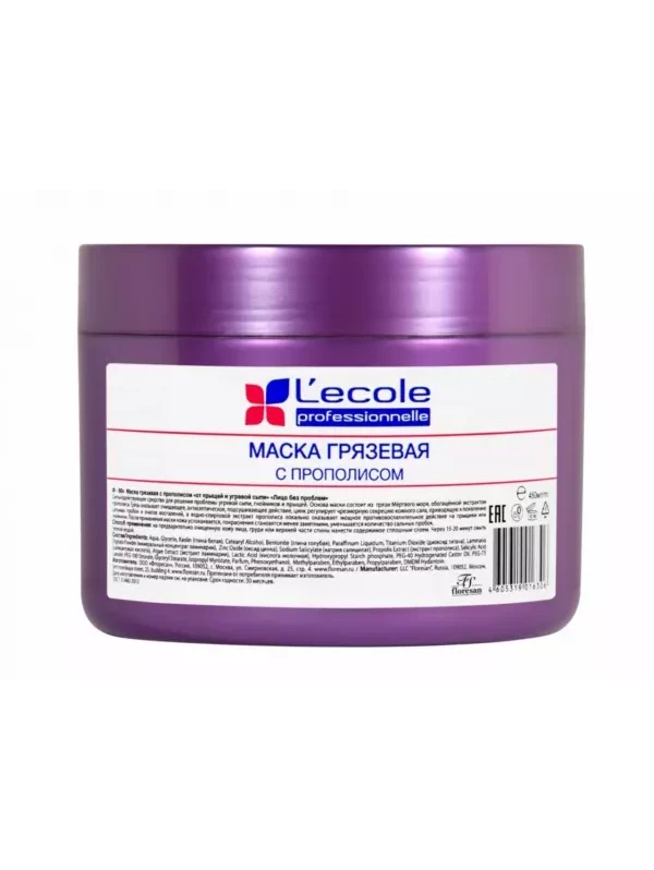 Флоресан L`ECOLE Маска грязевая с прополисом от прыщей и угревой сыпи,450мл (Ф-60v)