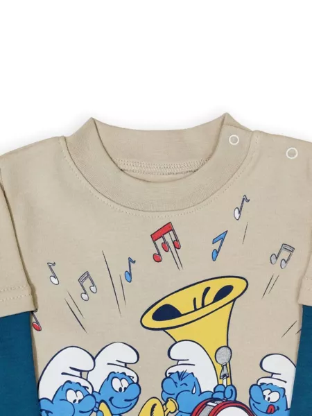 Джемпер для мальчика из х/б трикотажа. Украшен ярким принтом с мультипликационными героями. Горловина на трикотажном манжете из рибаны. Застёжка кнопки на левом плече. Рукава "два-колор" имитация двойного рукава.