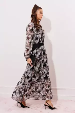 | Платье шифоновое полуприлегающего силуэта, отрезное по талии, с втачными рукавами. На подкладке. Полочка отрезная по талии с фигурной вставкой из отделочной ткани. Лиф с кокеткой, от кокетки до талии лиф на подкладке. От кокетки до низа платье на подкладке с отрезным воланом со сборкой. Спинка с кокеткой, застежкой на навесную петлю-пуговицу по горловине. От кокетки до талии спинка на подкладке, с отрезным воланом со сборкой. Рукав одношовный втачной, с резинкой по низу. | 100% ПЭ |