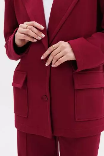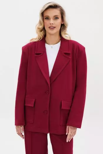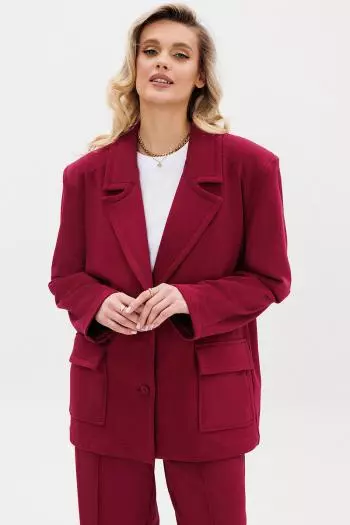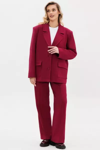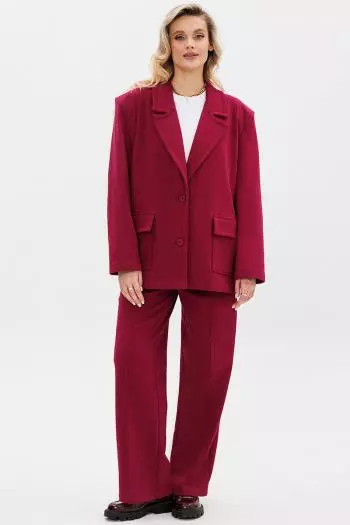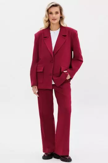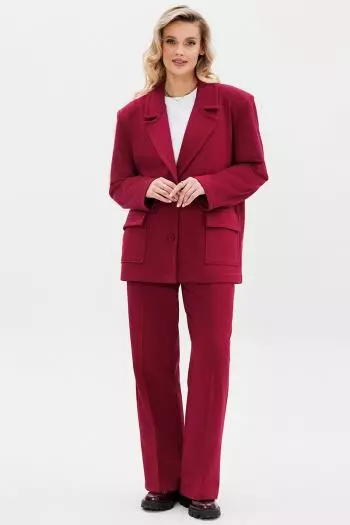 Состав: вишня, Рост: футер 3-нитка диагональ (без начёса) качества пенье- хлопок 80%; ПЭ 20%, Тип: Брючные костюмы Ультрамодный костюм с жакетом oversize с широким плечом станет вашим любимым в этом сезоне! Собирайте бесконечное количество стильных луков вместе с GO! Жакет: • расширенные плечи с плечевой накладкой • пиджачный воротник и лацкан • покрой oversize • функциональные накладные карманы с клапаном • застежка на две петли пуговицы • жакет без подкладки Брюки: • прямой силуэт • удобные карманы • стрелки по переду зафиксированы строчкой • пояс из ткани кашкорсе с резинкой и шнуром Длина жакета по среднему шву спинки: 72-74 см для роста 170-176 см. Длина рукава: 63-65 см для роста 170-176 см. Полуобхват груди жакета: 42 р - 58 см, 44 р - 60 см, 46 р. - 62 см, 48 р. - 64 см. Длина брюк по боковому шву с поясом: 105-107 см. Полуобхват бедер брюк: 42 р. - 48 см, 44 р. - 50 см, 46 р. - 52 см, 48 р. - 54 см.