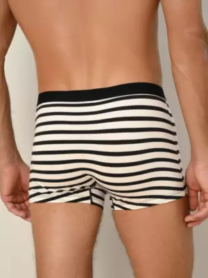 Мужские трусы-боксеры от Indefini, выполненные из мягкого и приятного на ощупь хлопка, обеспечивают отличную посадку и свободу движений. Дышащий материал позволяет коже дышать и быстро впитывает влагу, поддерживая ощущение свежести в течение дня. Мягкая эластичная резинка надежно удерживает изделие на талии, обеспечивая комфортную носку без давления. Чёрно-белый полосатый дизайн делает эти боксеры от Indefini универсальным элементом повседневного гардероба.