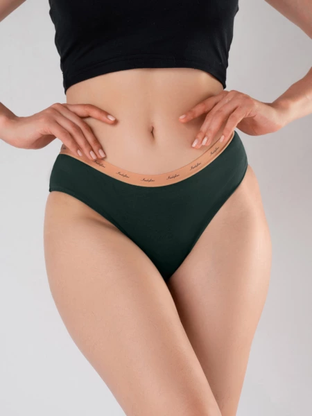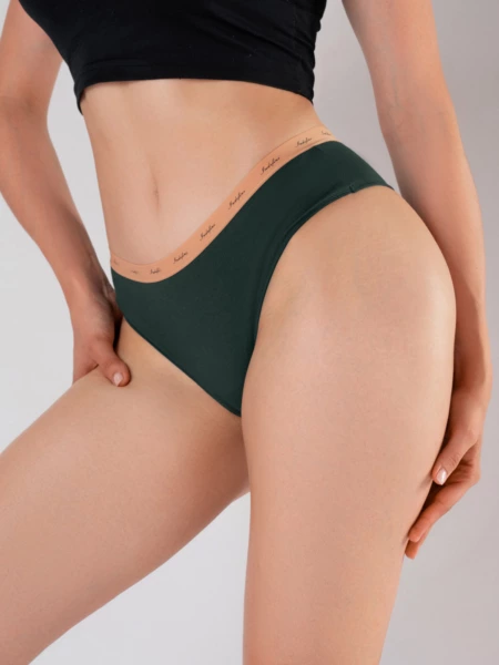 Женские трусы-слипы зелёного цвета, изготовленные из хлопка, мягкие на ощупь и приятно ощущаются на теле во время носки. Резинка на талии надежно фиксирует трусы на теле во время носки. Состав: 95% Хлопок; 5% Эластан._x000D_ _x000D_ Производитель: Indefini