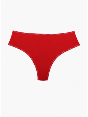 Стринги женские изготовлены из хлопка и выполнены в красном цвете с фактурой ткани в рубчик. Мягкая эластичная резинка, украшенная надписью INDEFINI, расположена на талии. Трусы стринги имеют среднюю посадку. Состав: 95% Хлопок, 5% Эластан._x000D_ _x000D_ Производитель: Indefini