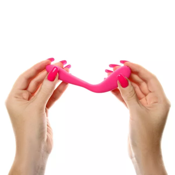 Вибратор для пар, выполненный из медицинского силикона, позволит получить одновременное удовольствие для двух партнёров. Игрушку можно использовать во время секса, таким образом вибрация стимулирует три зоны: точку G, клитор и пенис партнёра. Тонкую часть вибратора необходимо ввести во влагалище, а другую его часть положить на клитор. В таком состоянии игрушку можно использовать во время секса, соло-практик, также можно использовать в качестве вкладыша в трусики. Игрушка водонепроницаема, это позволит брать её собой в душ. |