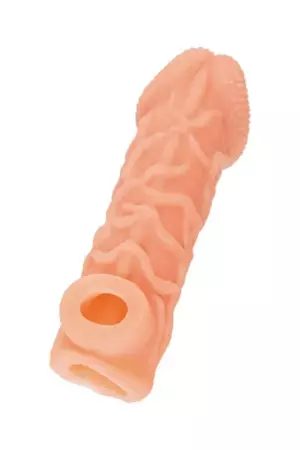 Телесная закрытая насадка с венками Cock Sleeve 006 Size M - 15,6 см.
