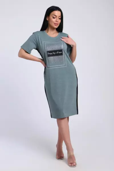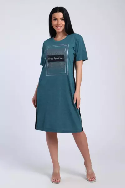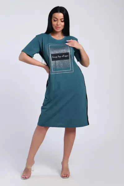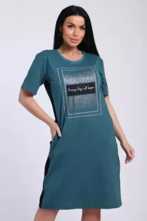 Женская туника из легкого трикотажного материала сумеет создать обладательнице чувство абсолютного комфорта. Свободную и спортивную тунику вполне можно использовать как летний вечерний костюм, как повседневный домашний наряд или как легкое праздничное платье. Особый шик изделию придает стильный и яркий принт на полочке. Дополнительным декором туники служат боковые вставки из ткани контрастного цвета в виде лампасов. Правильно выбранная туника обеспечит хорошим настроением, не лишая при этом ее обладательницу привлекательности и подчеркнет ее элегантность и хороший вкус.