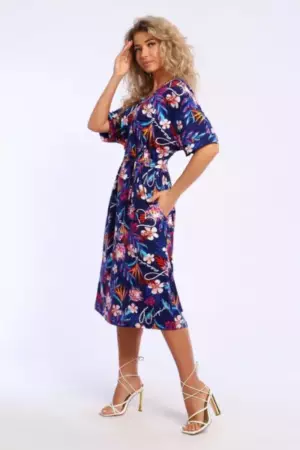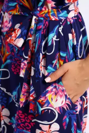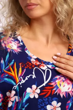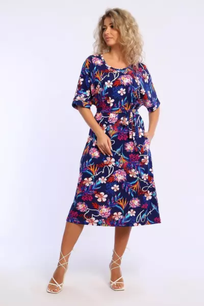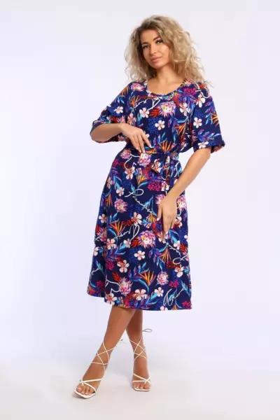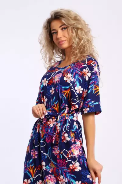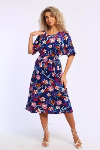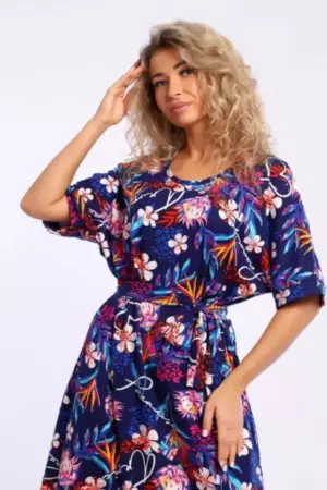 Платье свободного кроя с короткими цельнокроеным рукавами на манжетах. В боковых швах удобные карманы.
