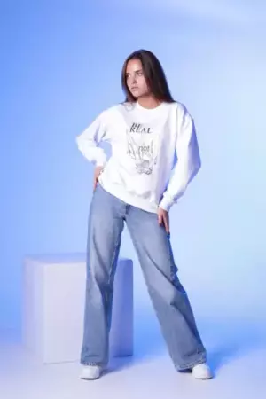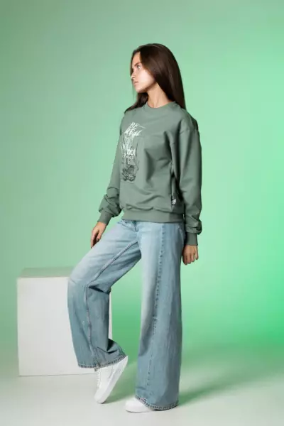 Свитшот оверсайз – это не только модный выбор, но и практичное решение для тех, кто ценит комфорт. Данная модель выполнена из качественного футера 2х нитки, это легкий и приятный на ощупь материал. Свитшот отлично комбинируется с различными элементами гардероба, будь то джинсы, юбки или спортивные брюки. В пошиве использованы модные цвета и лаконичный принт. Материал отделки пояса, горловины и манжет - кашкорсе, плотная хлопковая ткань.