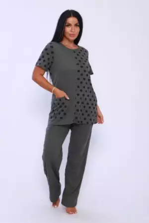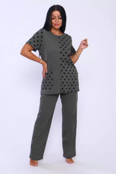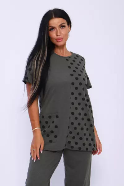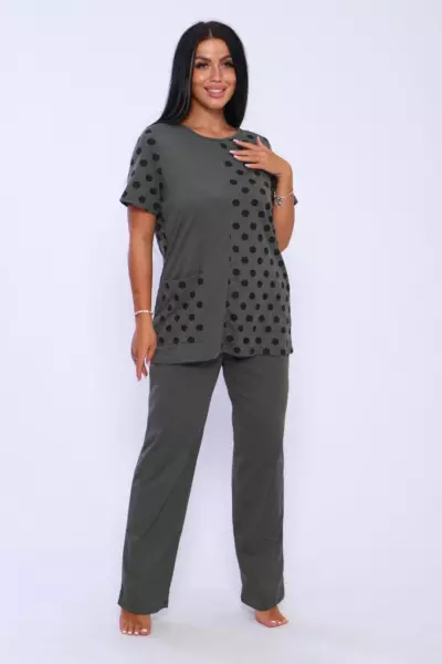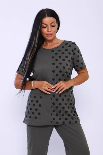 Костюм футболка и бриджи. Футболка с коротким рукавом, полуприлегающего силуэта. Брюки прямого кроя на резинке.
