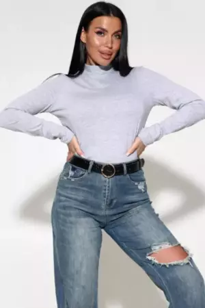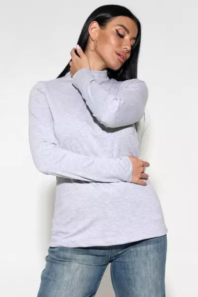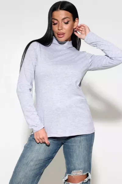 Представляем вам женскую водолазку, которая станет отличным дополнением к вашему гардеробу. Эта водолазка выполнена из качественого материала в расцветке серый меланж, который всегда остается в тренде и подходит к любому образу.