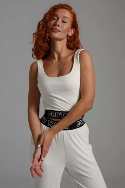Топ спортивный двухслойный выполнен из мягкой приятной к телу ткани в мелкий рубчик. Дополняет топ широкая эластичная резинка. Отлично сочетается со спортивными брюками, шортами, юбками.