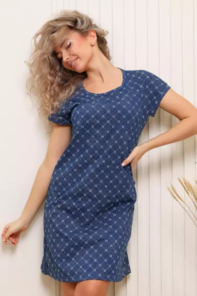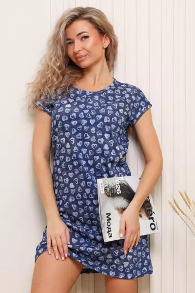 Туника женская прямого кроя с цельнокройным рукавом, чуть приталенного силуэта, обработка рукава манжетом. Низ подгибка, горловина окантовка. Ткань кулирка пенье.