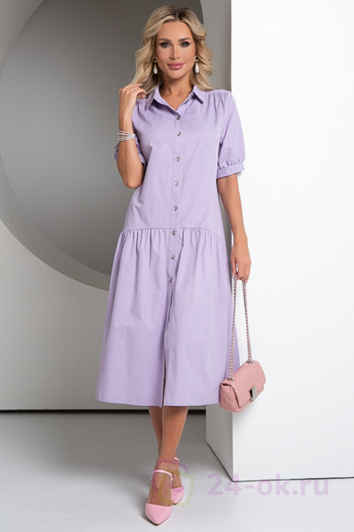Платье свободного силуэта из текстильного полотна длиной миди.Центральная застежка на петли и пуговицы.Воротник рубашечного типа на стойке