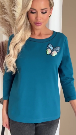 Лонгслив из , качественного хлопкового трикотажного полотна( ткань производство Турция).По переду украшен ,аппликацией , бабочка с пайетками.