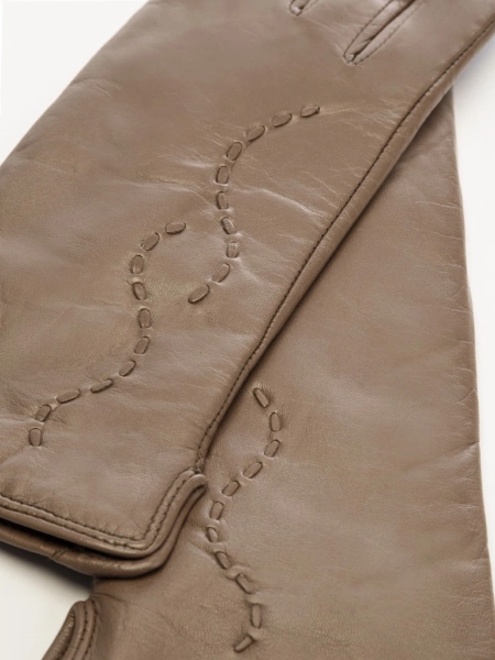 Пол: женский, Цвет: Какао, Сезонность: ОСЕНЬ, Страна производства: Китай, Состав/материал: Кожа ягненка; Шерсть Перчатки торговой марки LABBRA из натуральной кожи ягненка. Производитель Китай. Подкладка: 70% шерсть + 30% акрил. Отделка - декоративные волнообразные элементы из тонкого кожаного шнурка на лицевой части и разрез на боковой части манжеты. Длина манжеты от нижней точки большого пальца до края перчаток - 6 см. Длина пальцев - средняя.
