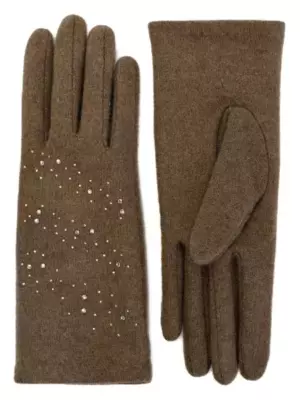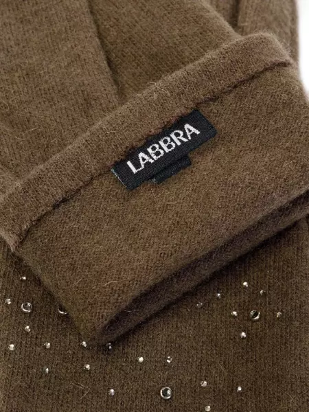 Перчатки женские торговой марки LABBRA производства Китай выполнены из трикотажной шерсти. Состав трикотажа: 80% шерсть, 20% нейлон. Модель без подкладки. Отделка - лицевая сторона украшена стразами. Длина манжеты от нижней точки большого пальца до края перчатки - 5,5 см. Длина пальцев - средняя.