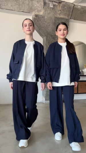 Бомбер на подкладе свободного силуэта со спущенным плечом, пояс и рукава на резинке. Накладные карманы с декоративной бахромой.