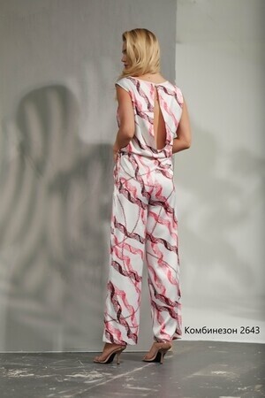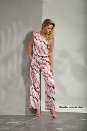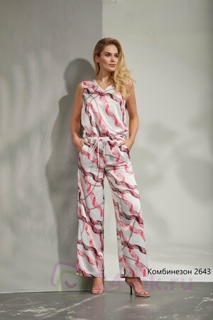Стильный и изящный женский комбинезон из французского крепа с модным принтом. Модель свободного кроя на линии талии вставлена тесьма. Комбинезон с застежкой по спинке на петли и пуговицы. Комбинезон с функциональными боковыми карманами. Модель универсальна и подойдет любой фигуре. Состав: ПЭ 80%, вискоза 20%