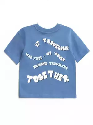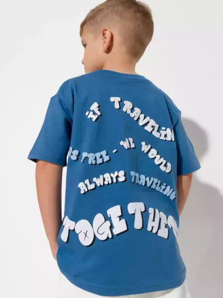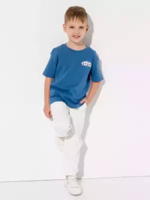 Модная футболка для мальчика в цвете индиго выполнена из натурального 100% хлопка. Заниженная линия плеча, обработанная горловина, свободный крой, классическая длина. По спинке футболка декорирована контрастным принтом, который выделит вашего ребенка из толпы. Отлично вписывается в гардероб и подходит для создания любого образа. Вещь прослужит долго и никогда не станет лишней в гардеробе!