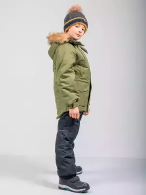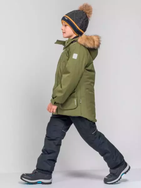 - Съёмная опушка из искусственного меха на молнии с дополнительной фиксацией отворотов меха на кнопки;