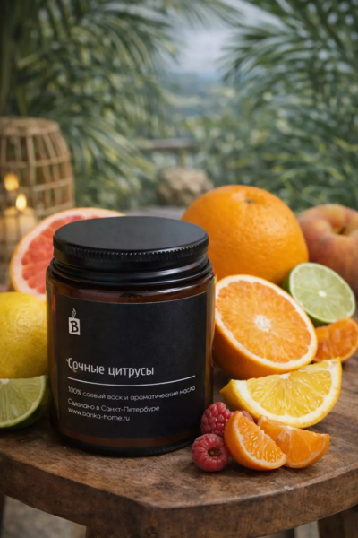 Banka Home СВЕЧА В ТЕМНОЙ БАНКЕ 120 мл "СОЧНЫЕ ЦИТРУСЫ"