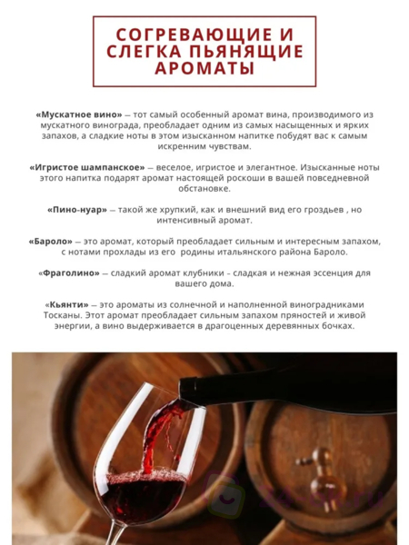 Бароло Аромат с преобладанием сильного и интересного аромата, с нотами прохлады из его родины итальянского района Бароло.