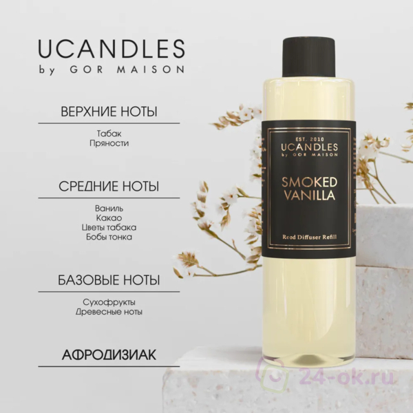 SMOKED VANILLAВ этой композиции мы объединили ваниль и табачный лист. Но аромат куда более многогранный, чем кажется на первый взгляд. Здесь и фруктовые оттенки, и утончённый шлейф пряностей.