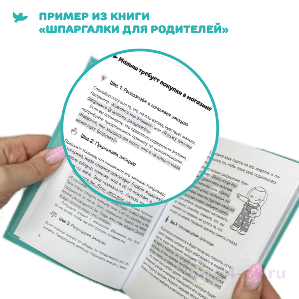 ШПАРГАЛКИ ДЛЯ РОДИТЕЛЕЙ - книга-блокнот, которая поможет справляться со сложными ситуациями и укреплять отношения с ребёнком. В Шпаргалках даются конкретные рекомендации, как вести себя во время детских истерик, что говорить. Родители получат подсказки на 9 распространённых сложных ситуаций: когда малыш требует покупки в магазине, забирает игрушки или игрушку забрали у него, не хочет уходить с детской площадки, убегает от родителей, боится врача, капризничает, потому что устал или требует внимания, не хочет ждать.