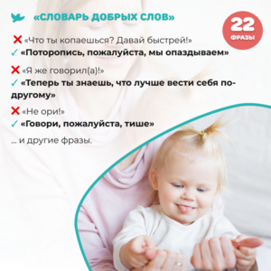 - принимать чувства ребёнка, успокаиваться во время сложных ситуаций.