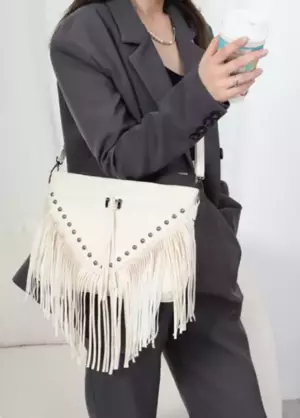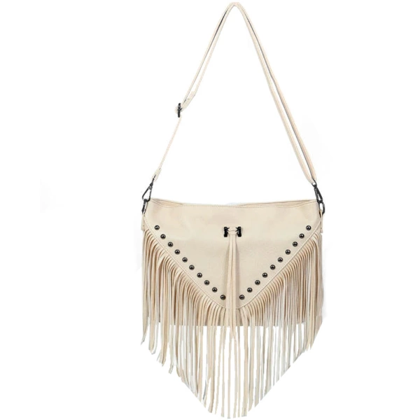 BG-OL-01-Cream Модная женская сумка с бахромой.